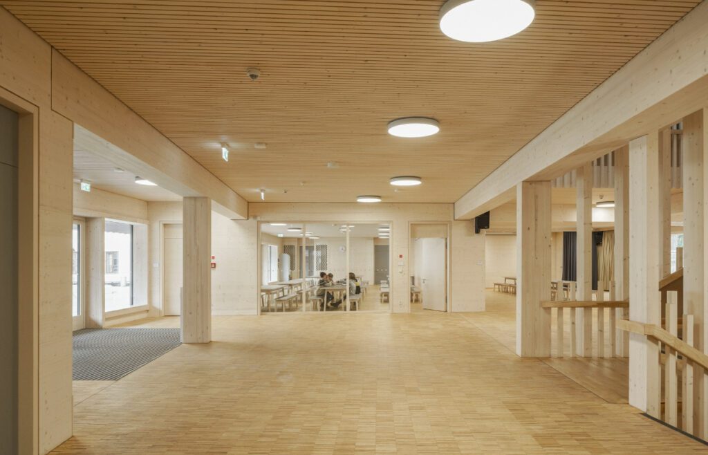 De architecten hirner & riehl uit München hebben in de afgelopen jaren een portfolio opgebouwd van ontwerpen waarin duurzame bouwmaterialen grootschalig worden toegepast. Zo wordt er naast klei, stro en hennep ook altijd hout gebruikt. Deze benadering is ook doorgevoerd bij de nieuwe Franziskus basisschool in Haidhausen.
