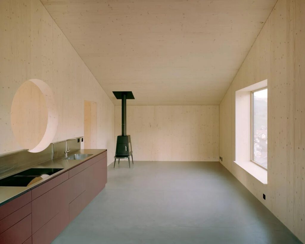 Het Zwitserse Giswil vormde voor Oliver Christen Architects een podium voor het realiseren van een woonhuis dat volledig is opgebouwd uit regionaal hout. De steile hellingen, de bijzondere geologie van de bouwplaats die door de vallei voortdurend beweegt en de heterogene omgeving vormden bijzondere uitdagingen.