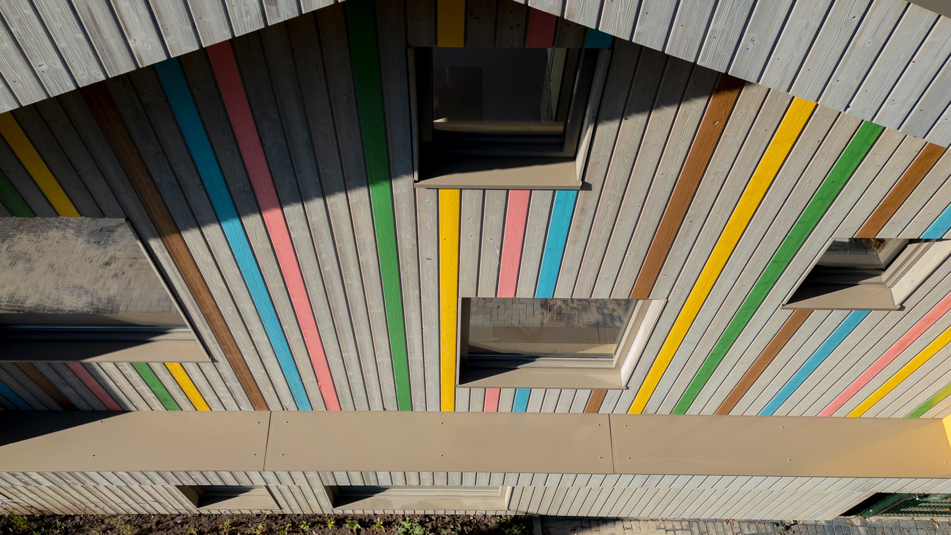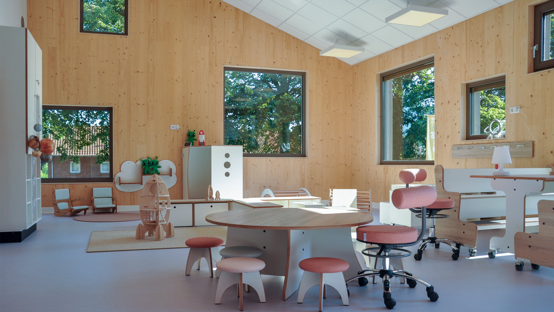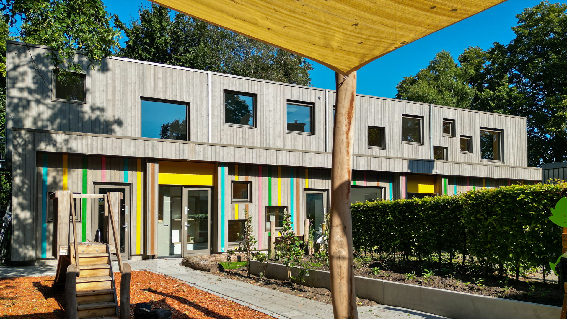Alles is van hout in dit vrolijke kinderdagverblijf Kleine Maatjes in Wierden. Met CLT-elementen tot wel 14 meter is het casco in vier weken tijd in elkaar gezet. Voor deze kinderopvanglocatie was duurzaamheid leidend in elke keuze die het bouwteam onder leiding van Tala maakte. Dus biobased, met een positieve CO2 footprint én circulair. Met de kinderen in gedachten zijn de materialen toegepast op een natuurlijk speelse manier.