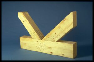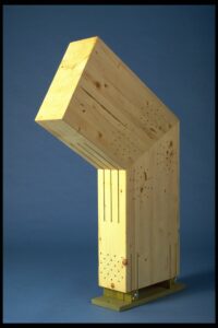 Hermann Blumer (1943) is niet de eerste of enige die zegt dat deze eeuw het centennium van hout wordt. Hij is wél een van de grootste voorlopers die dit materiaal als het beton van de 21ste eeuw op de kaart heeft gezet met grensverleggende uitvindingen en onmogelijke houtconstructies. Hout zit niet langer in het verdomhoekje van brandvaardigheid, oorverdoving en rotjeweg. Dat was anders toen in de jaren veertig en vijftig het ingeslapen natuurmateriaal werd voorbijgesneld door de ‘moderne’ bouwstoffen beton en staal, en het vervolgens overhaast gedroogd de schade wilde beperken met wat er aan inadequate verbindingsmiddelen voor het spijkeren lag.